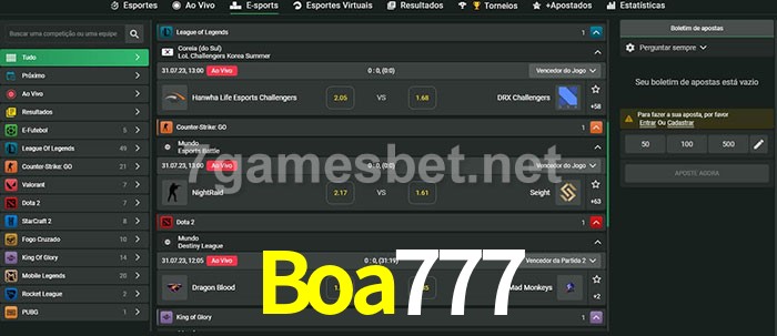 A aposta Boa777 oferece aos jogadores a experiência mais conveniente de apostas em eSports!